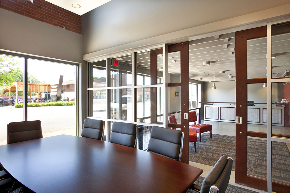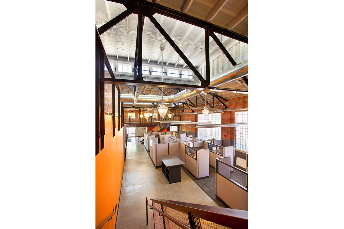A historic renovation of a facility originally built in 1924, the new Building Controls and Services headquarters features an industrial design with open ceilings, exposed structures, polished concrete floors and the building’s original brick walls. The new space plan for the 6,800 SF main level and 1,700 SF upper level incorporates a reception/lobby area, offices, conference room, modular work stations, new restrooms and storage. Winner of the Kansas Preservation Alliance Medallion Award for Excellence.